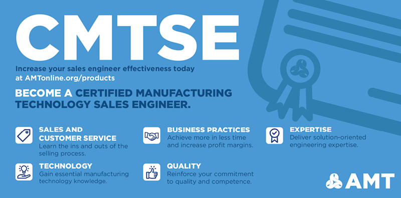 To provide your company and your salespeople with an even greater competitive advantage after they鈥檝e mastered the fundamentals, the Certified Manufacturing 九色视频 Sales Engineer (CMTSE) program is your best tool in the toolbox.