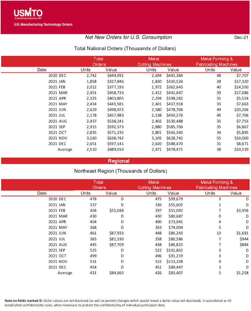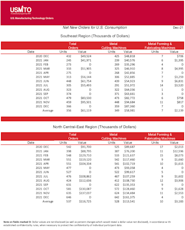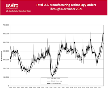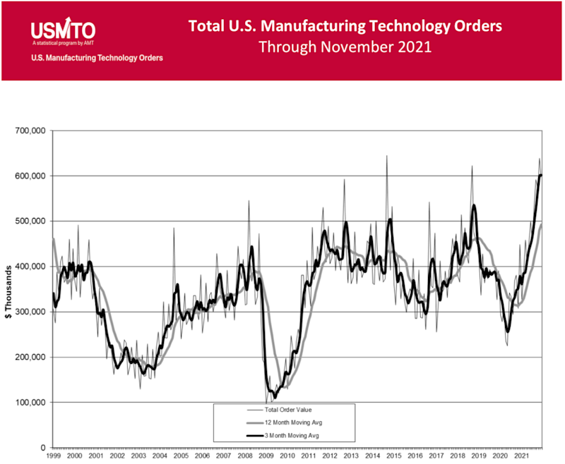 鈥淚n addition to demand from changing consumer behavior, reshoring and supply-chain diversification drove demand for manufacturing technology orders in December,鈥 said Woods. 鈥淧roducts that were typically manufactured overseas were often subjected to shipping delays, crowded ports, or factory-wide shutdowns to prevent the spread of COVID-19.鈥 In addition to mold and die manufacturers, increased orders from metal valve manufacturers as well as hardware, spring, and wire manufacturers can be attributed to the need to overcome supply-chain hurdles and domestic capacity constraints.