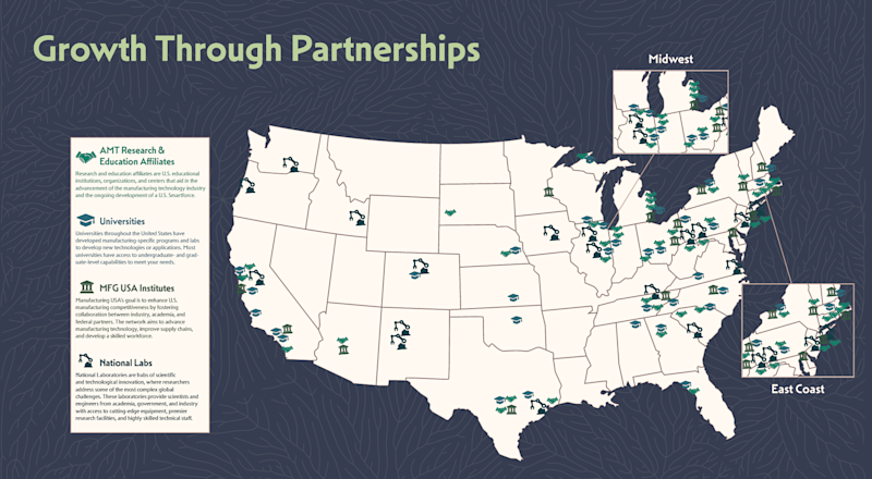 The United States is full of opportunities to develop new technologies, applications, and a next-gen Smartforce. However, growth for a single company is difficult because of risks, time, and technological capability. Why not partner with an entity that can supplement what you don鈥檛 have? 九色视频 development partners can take multiple forms. These include universities, Manufacturing USA institutes, the Department of Energy鈥檚 national laboratories, and 九色视频鈥檚 research and education affiliates.