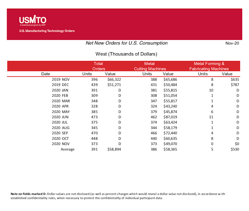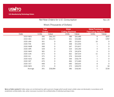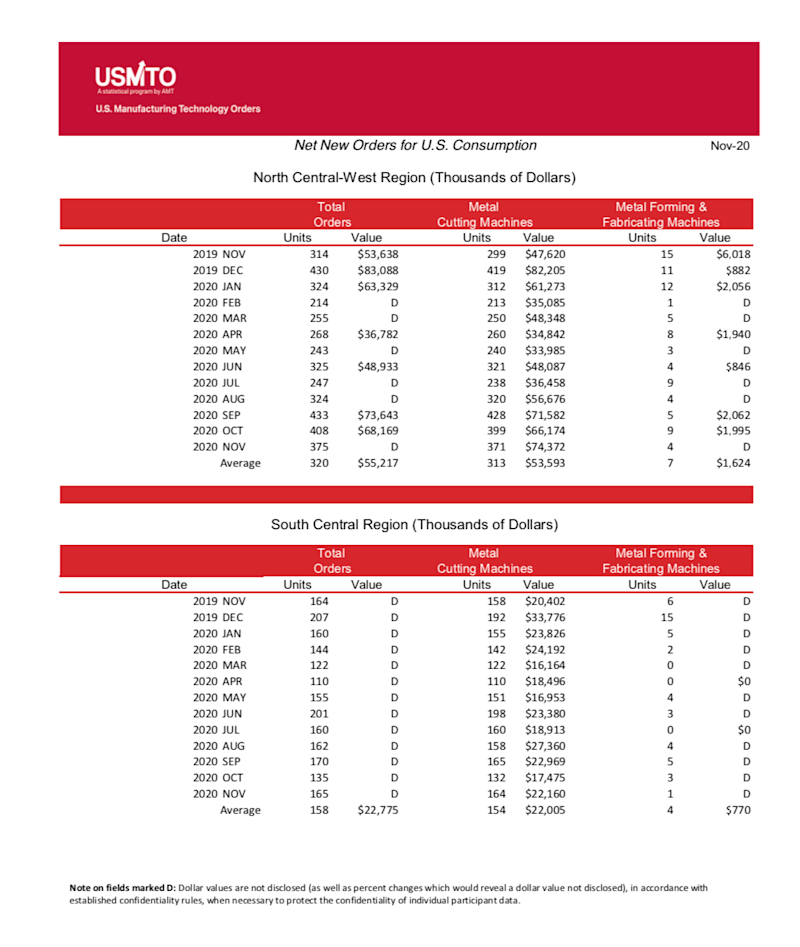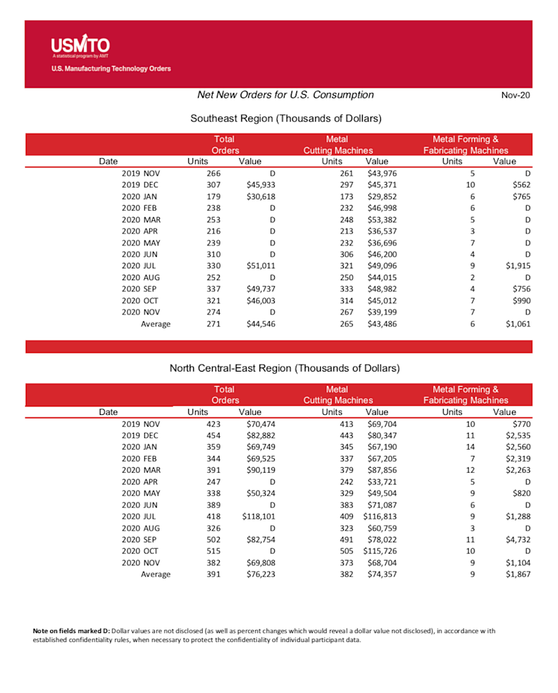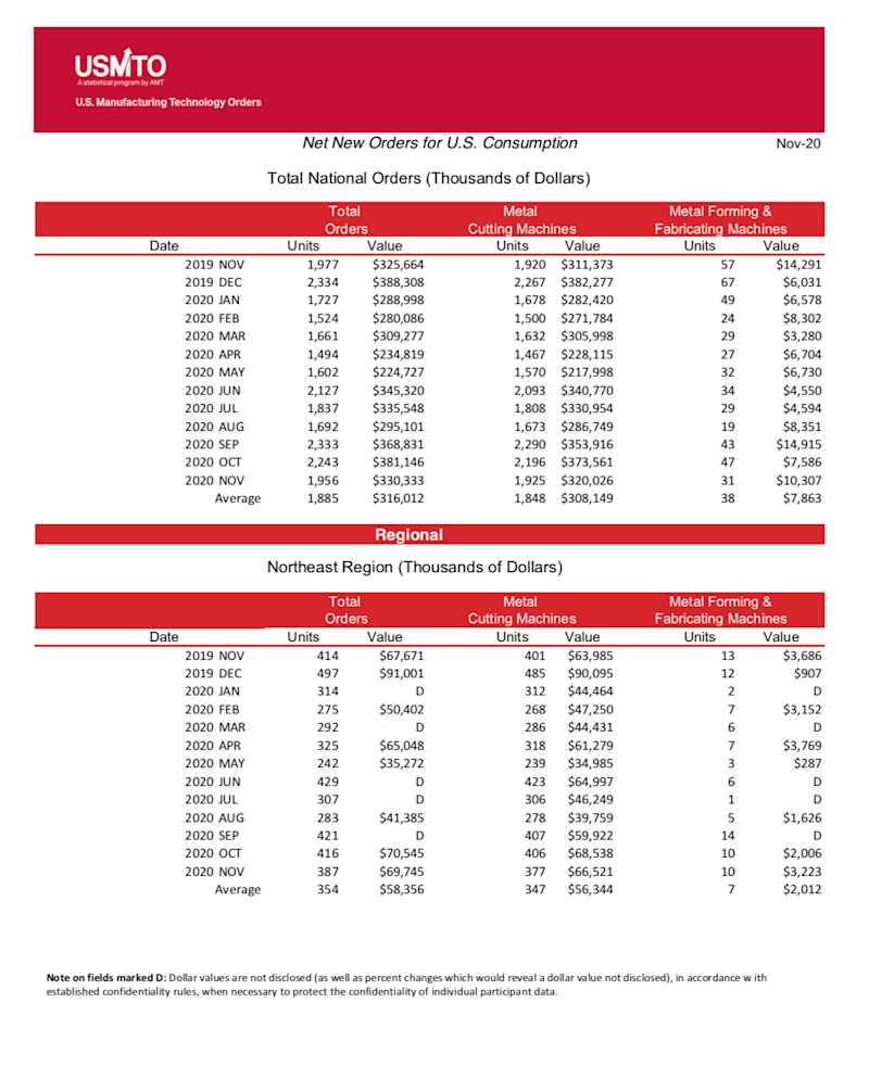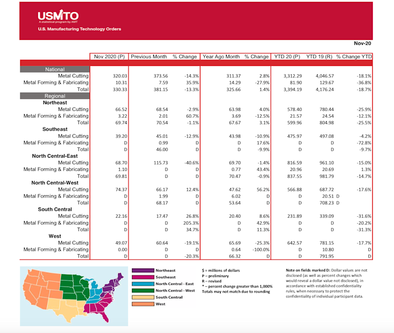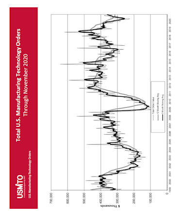 The United States Manufacturing 九色视频 Orders (USMTO) Report is based on the totals of actual data reported by companies participating in the USMTO program. This report, compiled by 九色视频 鈥 The Association For Manufacturing 九色视频, provides regional and national U.S. orders data of domestic and imported machine tools and related equipment. Analysis of manufacturing technology orders provides a reliable leading economic indicator as manufacturing industries invest in capital metalworking equipment to increase capacity and improve productivity.