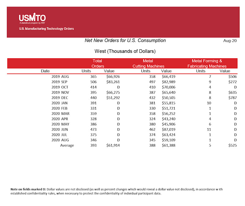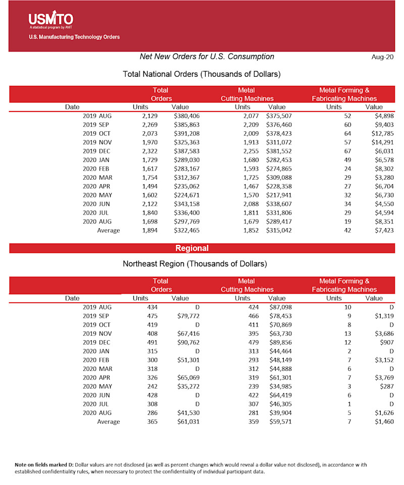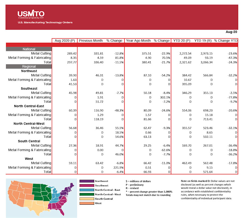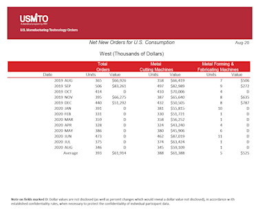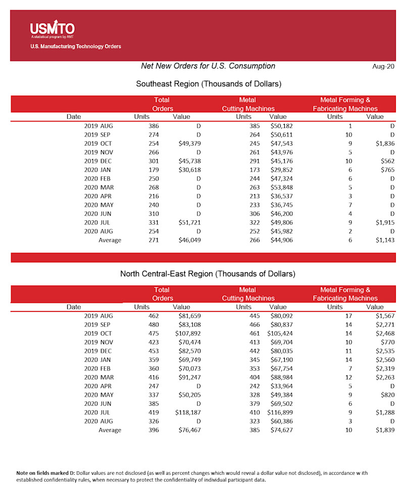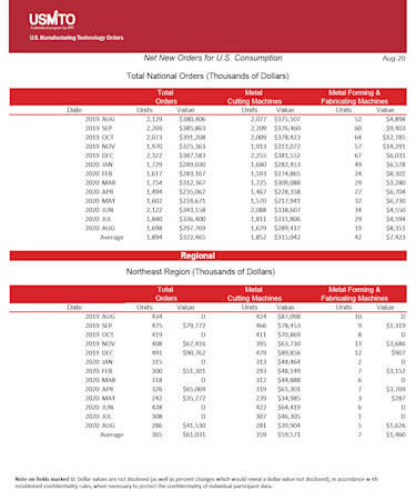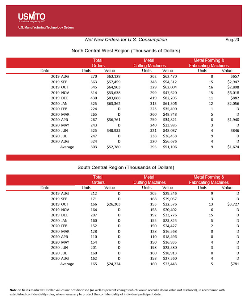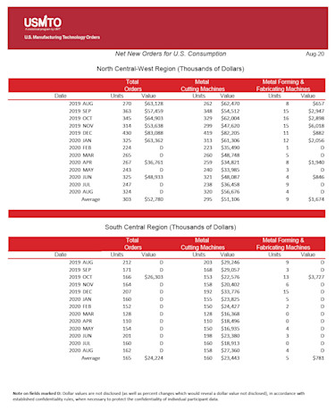 The United States Manufacturing 九色视频 Orders (USMTO) Report is based on the totals of actual data reported by companies participating in the USMTO program. This report, compiled by 九色视频 鈥 The Association For Manufacturing 九色视频, provides regional and national U.S. orders data of domestic and imported machine tools and related equipment. Analysis of manufacturing technology orders provides a reliable leading economic indicator as manufacturing industries invest in capital metalworking equipment to increase capacity and improve productivity.