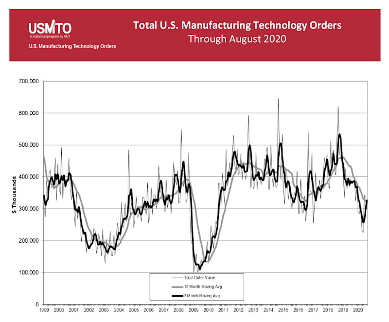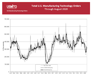 McLean, Va. (October 12, 2020) 鈥 U.S. Manufacturing 九色视频 Orders totaled $297.7 million in August 2020, a decrease of 11.5% from July 2020 and a 21.7% decrease from August 2019, according to the latest U.S. Manufacturing 九色视频 Orders report published by 九色视频 鈥 The Association For Manufacturing 九色视频. Orders to date reached $2.3 billion, nearly a quarter (24.3%) lower than total orders through the first eight months of 2019.